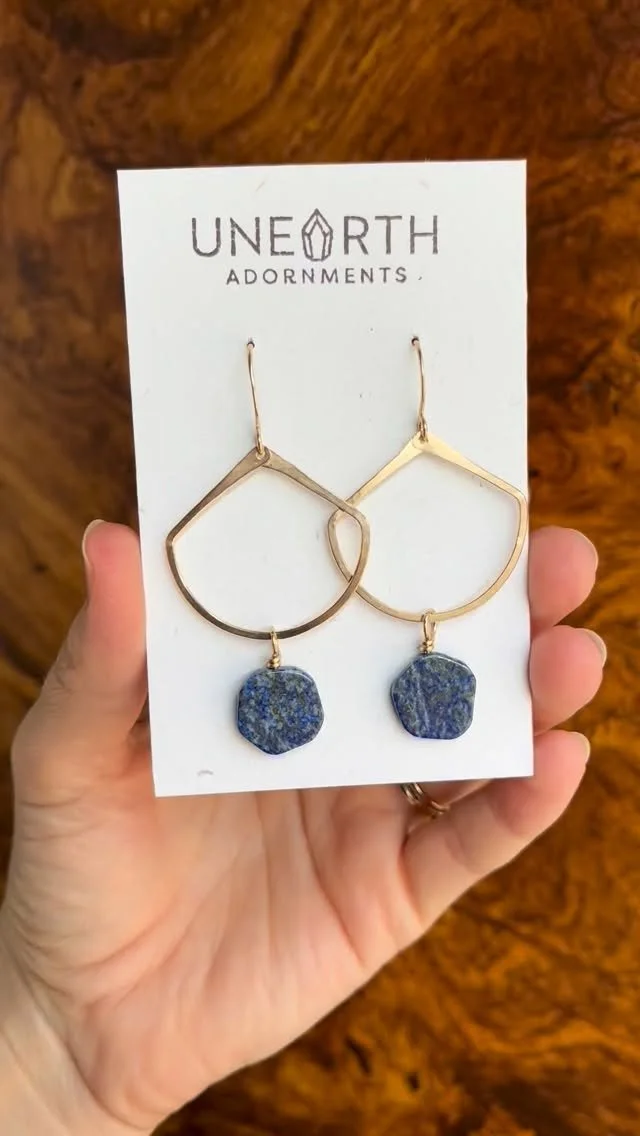 Unearth Adornments creates minimalist, geometric jewelry using natural gemstones and fine metals. Each piece is shaped by hand with a focus on form, balance, and wearability. Designed to feel intentional, enduring, and quietly connected to the materials themselves.